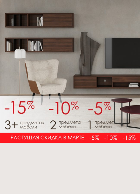 - Растущая скидка 5–10–15% на мебель брендов Fratelli Barri и MOD Interiors