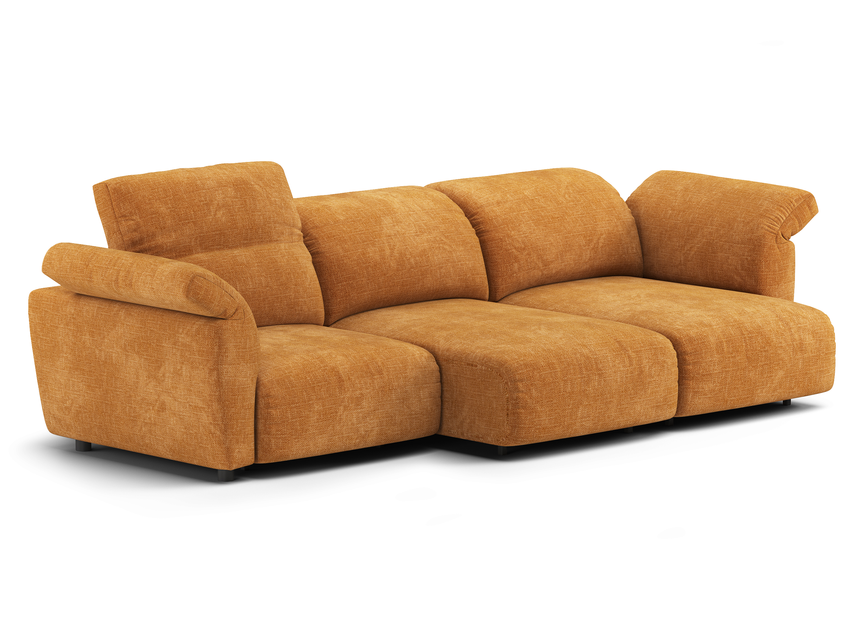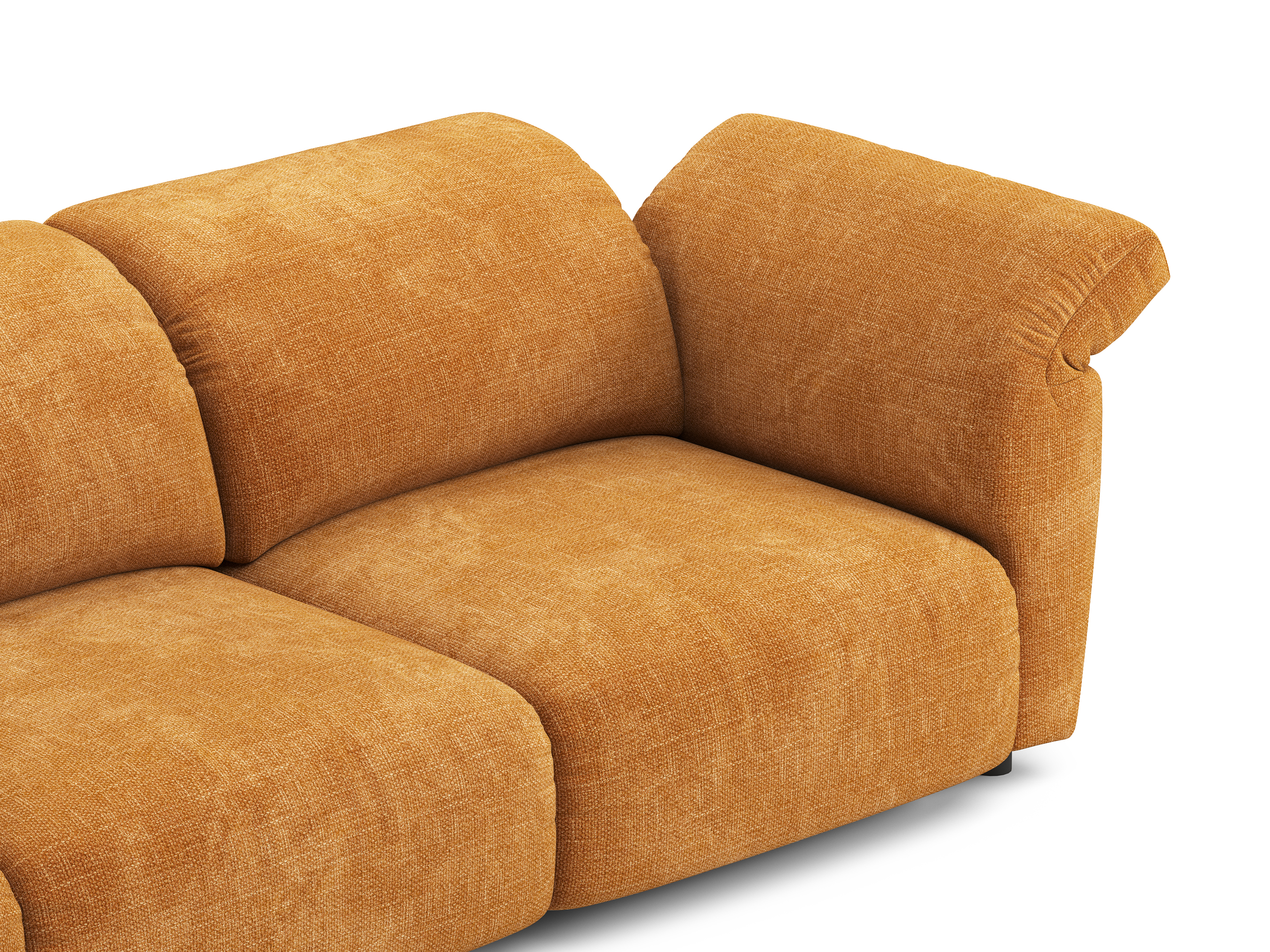 1️⃣ Высокая спинка без компромиссов. Трансформируемый подголовник дает нужную поддержку, а при островном размещении опускается вниз, сохраняя лёгкий силуэт дивана.