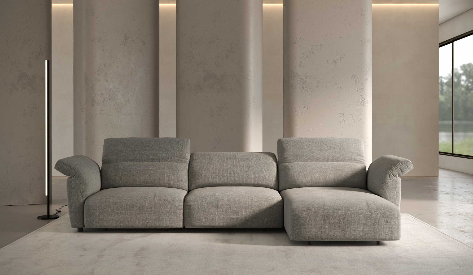 3️⃣ Главная фишка — адаптивная глубина. Эксклюзивный механизм выдвигает сиденья на 35 см. (индивидуально на каждое место). Диван за секунду меняет формат с «гостевого» на «лаунж» для отдыха.