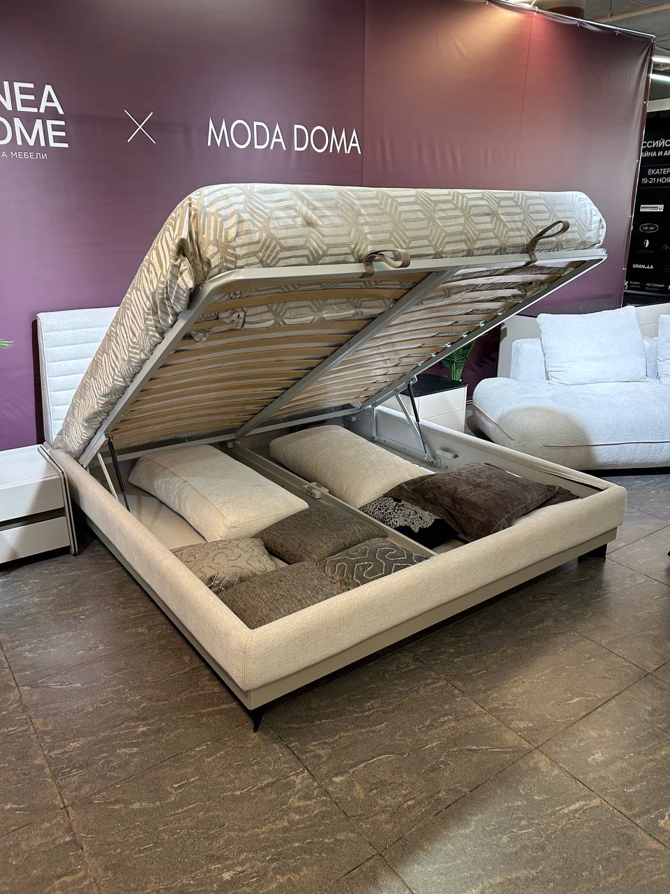 Основная потребность наших клиентов, заказчиков, дизайнеров и архитекторов была в модели кровати на высоких опорах и с бельевым коробом. И мы выполнили эту задачу.