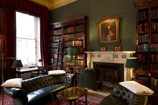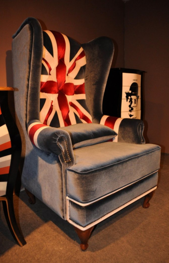 Кожаное кресло для чтения у камина Классическим английским мебельным элементом в интерьере гостиной считается кресло темного дерева с высокой спинкой, подголовником «с ушами», округлыми подлокотниками и узорчатой тканевой обивкой. Такие кресла называются «wingback chair», очень комфортны и надежно защищают вас от сквозняка. Кресло может дополняться скамеечкой для ног и уютным пледом.