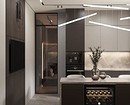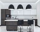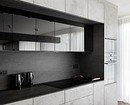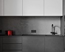 В таком оформлении все подчиняется строгому рационализму: каждый предмет мебели заполняет то пространство, которое для него предназначено, не оставляя никаких зазоров или пустых участков; вся посуда, продукты, утварь и мелкая техника спрятана за элегантными фасадами гарнитура, а крупные приборы (духовой шкаф, индукционная варочная панель, кофе-машина, холодильник) идеально вписываются в единую концепцию высокотехнологичной и ультрафункциональной кухни.