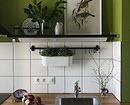 Отдельные дверцы шкафчиков могут быть изготовлены из тонированного стекла либо покрытыми пленкой голубого, салатового, оранжевого, желтого, бордового цвета. Также в роли насыщенного акцента может выступать фартук, барная стойка, стулья, фоновая стена.