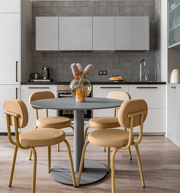 Даже если площадь вашей кухни всего 5-6 кв. м. Один из ключевых трендов ближайших лет — единое пространство, много света и воздуха. Если вы живете в старом фонде и нет возможности сделать открытую планировку с большой кухней-гостиной, используйте в зоне готовки: