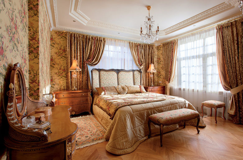 Это интересно! Если вы оформляете спальню в загородном доме или коттедже, изучите также стиль кантри – это направление, «вышедшее» из классического английского стиля.