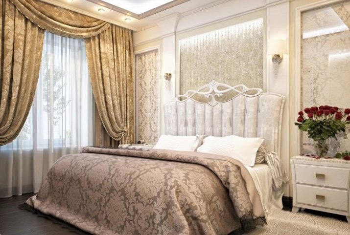 Ненавязчивый бело-золотой или кремово-бежевый оттенки в маленькой спальне в классическом стиле будут выглядеть намного легче, чем темные. К тому же, на фоне нежной отделки любые вкрапления коричневого, черного и других насыщенных цветов привлекут к себе много внимания, создавая ненужный контраст и зрительно уменьшая пространство.