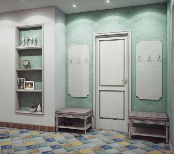 Это направление пришло к нам из Франции. В нем преимущество занимают пастельные оттенки, поэтому яркого бирюзового здесь не найти. Но зато разбеленная бирюза может присутствовать в оформлении как стен, так и других поверхностей прихожей в стиле прованс.