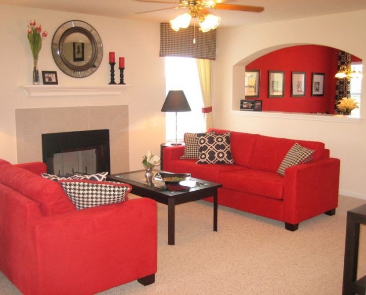 Если вы хотите, чтобы комнаты в доме были алого цвета, то лучше всего отдать предпочтение гостиной. Это всегда беспроигрышный вариант, который позволит создать праздничное настроение.