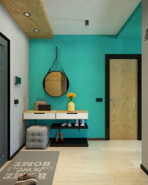 Если хозяину по душе все яркое и необычное, то прихожая с нотками Востока впишется в общий дизайн дома как нельзя лучше. На Востоке бирюза особо ценится и считается драгоценным камнем, поэтому такой интерьер станет шикарным и роскошным.