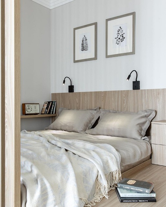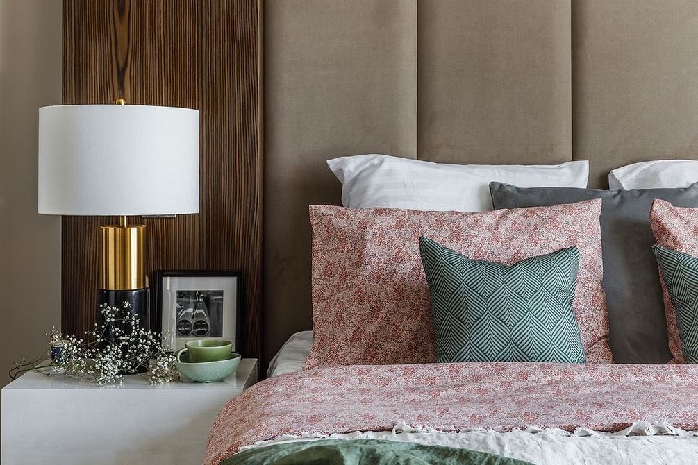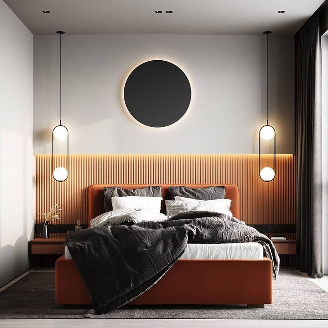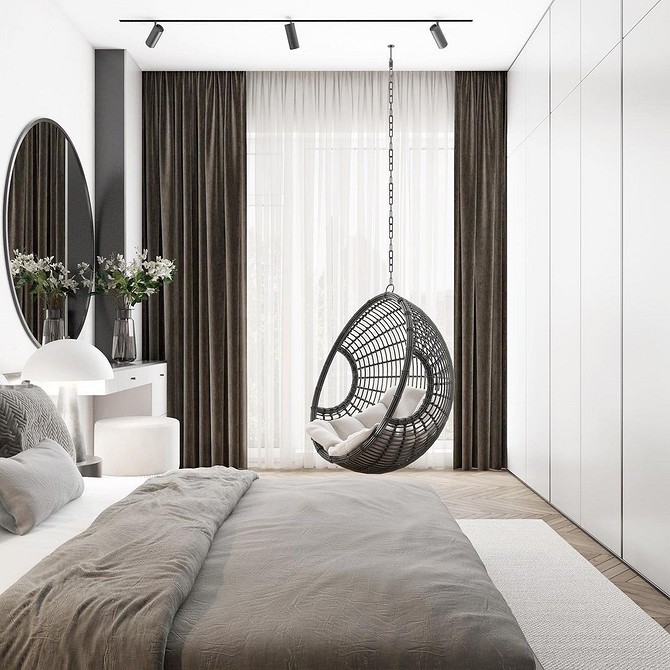 - Умеренность во всем. Чем меньше, тем лучше — девиз современного интерьера. В любом помещении, а в спальне особенно, не должно быть ничего лишнего: ни мебели, ни избыточного декора. Главная задача — создать легкое, наполненное воздухом пространство, и избежать захламления. Эта идея тесно связана с тенденцией осознанного потребления, которая плавно, но уверенно входит в повседневную жизнь.