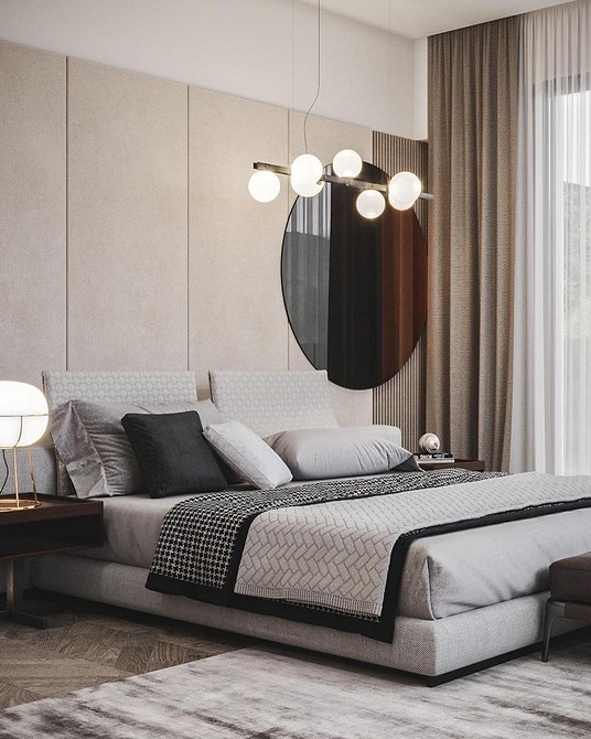 Если вынести за скобки стилистики в чистом виде, современная стилистика — это скорее отношение к дизайну, которое противопоставляется классике с ее строгими канонами и жесткими рамками. Вот основные принципы, по которым строится такой интерьер - интерьер красивой спальни в современном стиле
