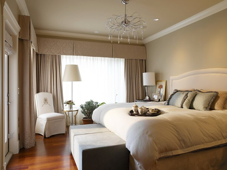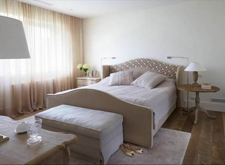 Отделка в спальне, как правило, максимально простая, выступающая в роли нейтрального фона.