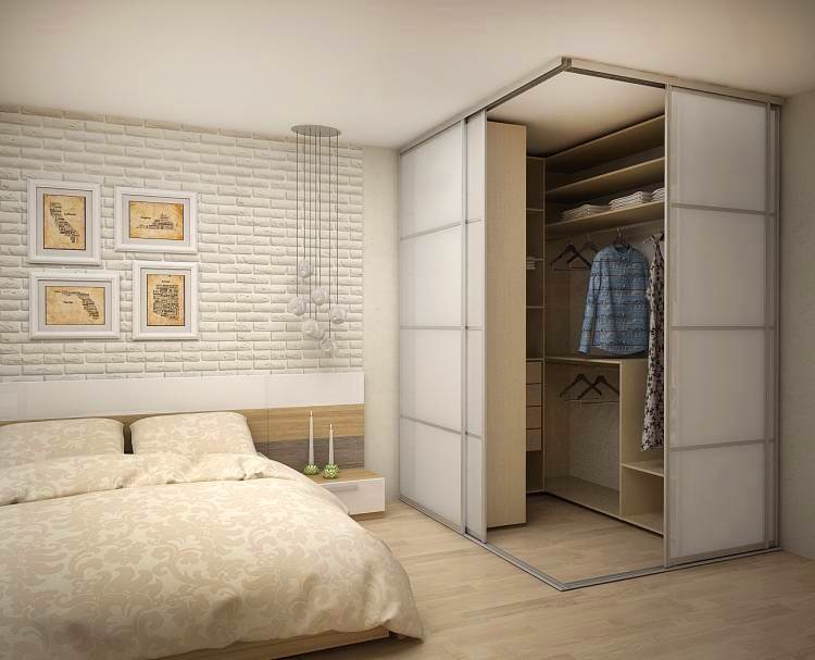 Места хранения (шкафы, комоды) не должны создавать ощущения загроможденности. Этому требованию соответствуют глянцевые зеркальные фасады, позволяющие отражать искусственный свет. При наличии свободного пространства можно предусмотреть небольшую гардеробную, скрытую за легкой ширмой.