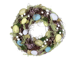 Хотите сделать что-то более изысканное? Соберите из прутиков, веточек вербы, перьев, лент, зелени, декоративных подвесок-яиц венок или букет. Если времени для самостоятельного творчества нет, можно выбрать готовые композиции. В центр венка можно положить подарок или просто – яркие и душистые яблоки, груши.