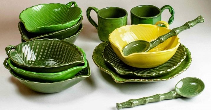 - во-первых, зелёная керамика цвета молодой зелени, привлекательный лесной зелёный, цвет морской зеленый смотрится очаровательно в сочетании с коричневой посудой. Непременно обратите внимание на посуду зеленого цвета оттенка нефрит и трилистник;