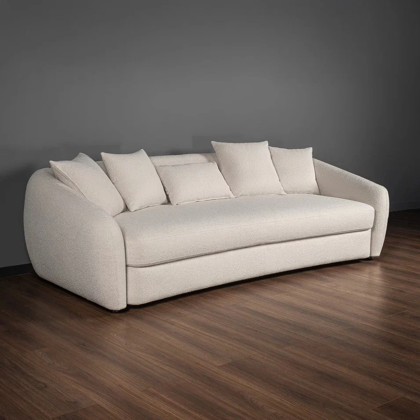 Диван-кровать с плавными подлокотниками модели Lunar от MOD Interiors. Элегантный дизайн, подчеркнутый мягкими плавными линиями и роскошными подушками, создает атмосферу уюта и гармонии в интерьере. Модель выполнена в современном европейском стиле.