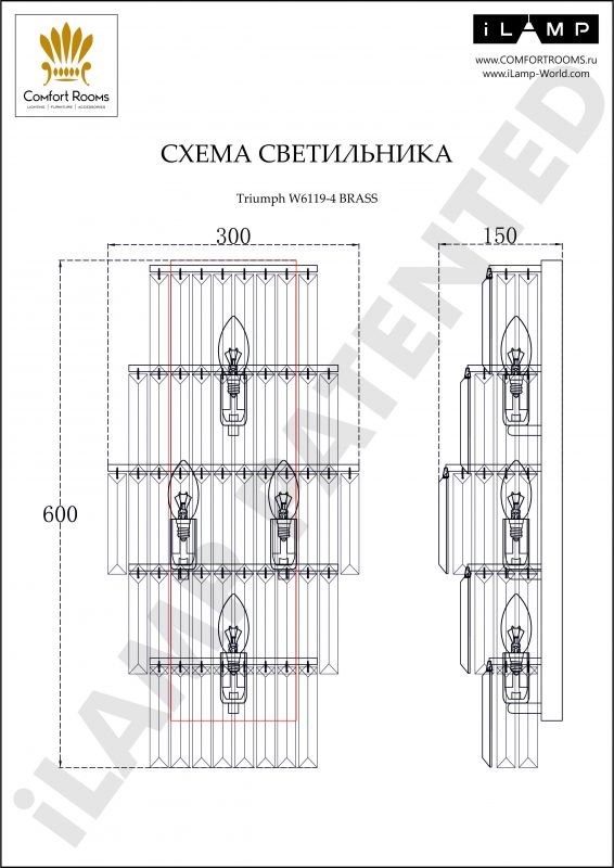 - Цвет плафона: прозрачный