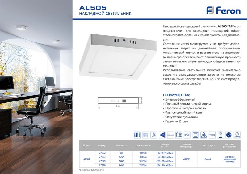 - Тип монтажа: накладной