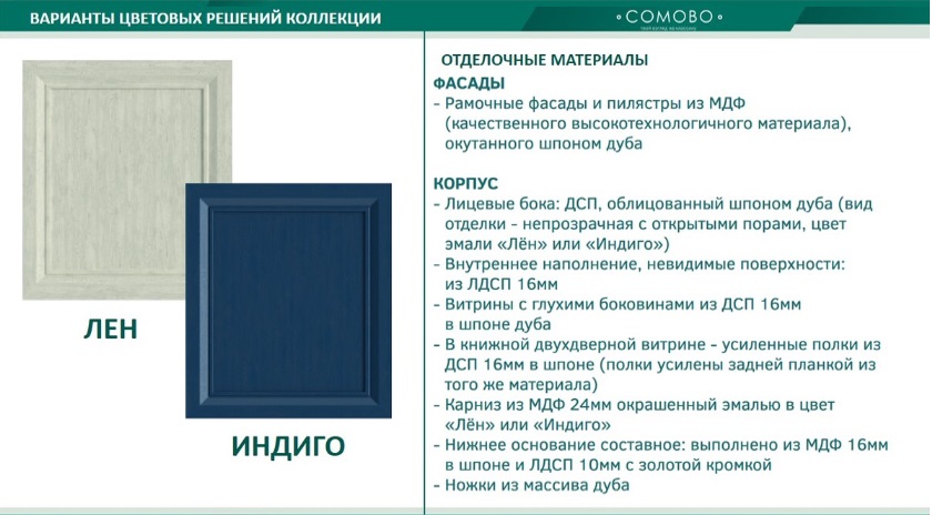 Коллекция наполняет помещение легкостью и непринужденностью, а использование высококачественных материалов (шпон и массив дуба) обеспечивает его владельцу комфорт, долговечность использования и заботу о здоровье. Натуральный шпон дуба - прочный, экологичный, долговечный материал, максимально ярко передающий мельчайшие оттенки богатейшей текстуры древесины, что делает каждое изделие коллекции уникальной и неповторимой.