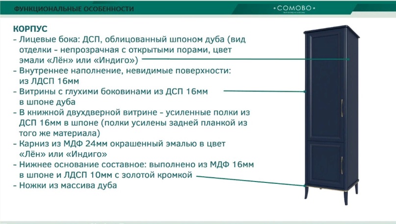 Оригинальные элегантные ножки из массива дуба придают коллекции «Глория» легкость, воздушность, облегчают уборку, обеспечивает дополнительную циркуляцию воздуха, сохраняя здоровье хозяев и увеличивая срок службы мебели.
