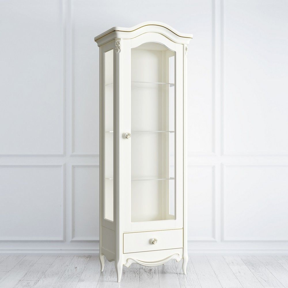 Изысканная витрина с правосторонней (R) навеской двери – отличное решение для столовой, гостиной или рабочего кабинета в стиле Прованс. Массив натурального бука украшен резным декором, который дополнен оригинальной формой крыши и ножек витрины. В качестве ключевого цвета используется матовый антрацит. Требуется сборка. Количество мест указано в свойствах товара.