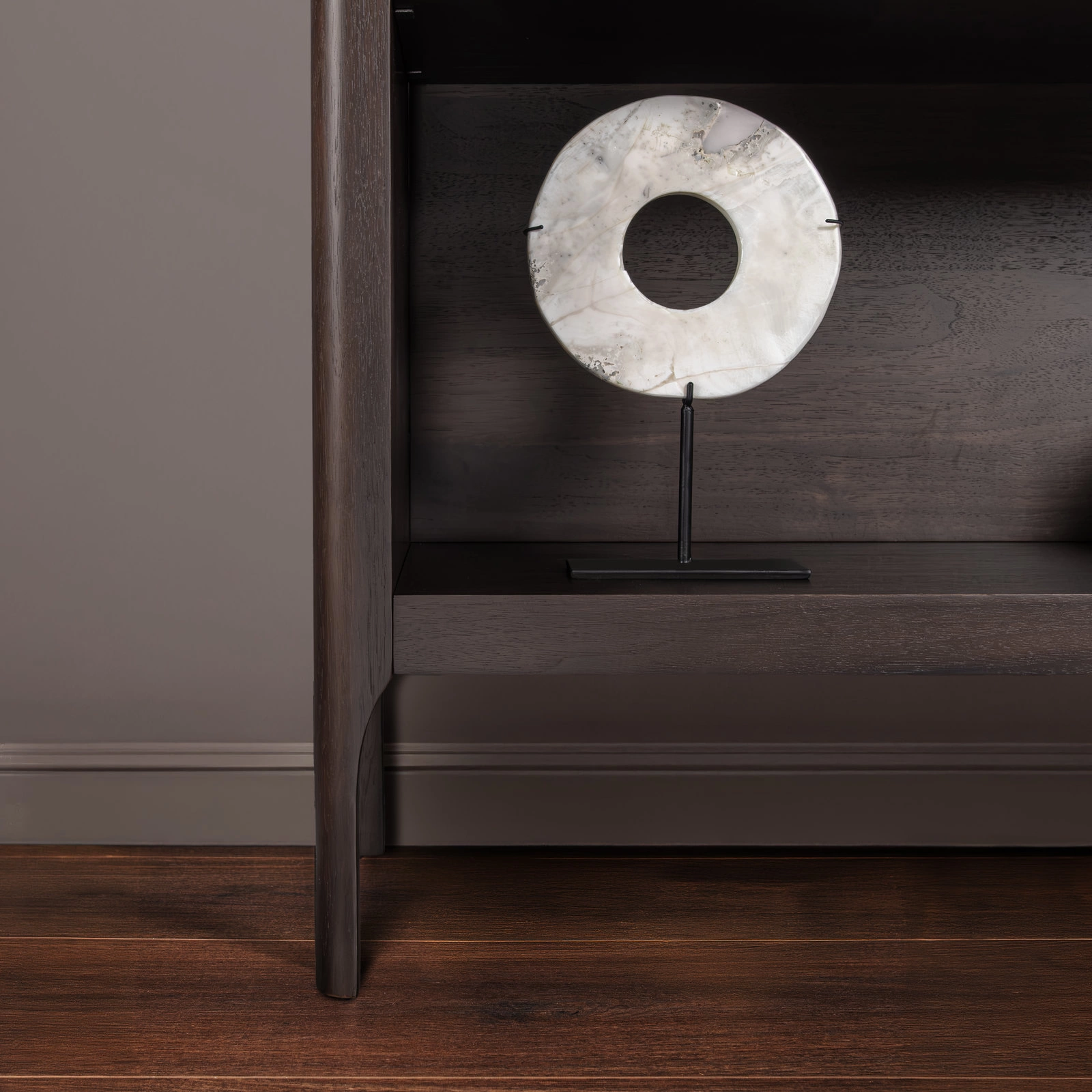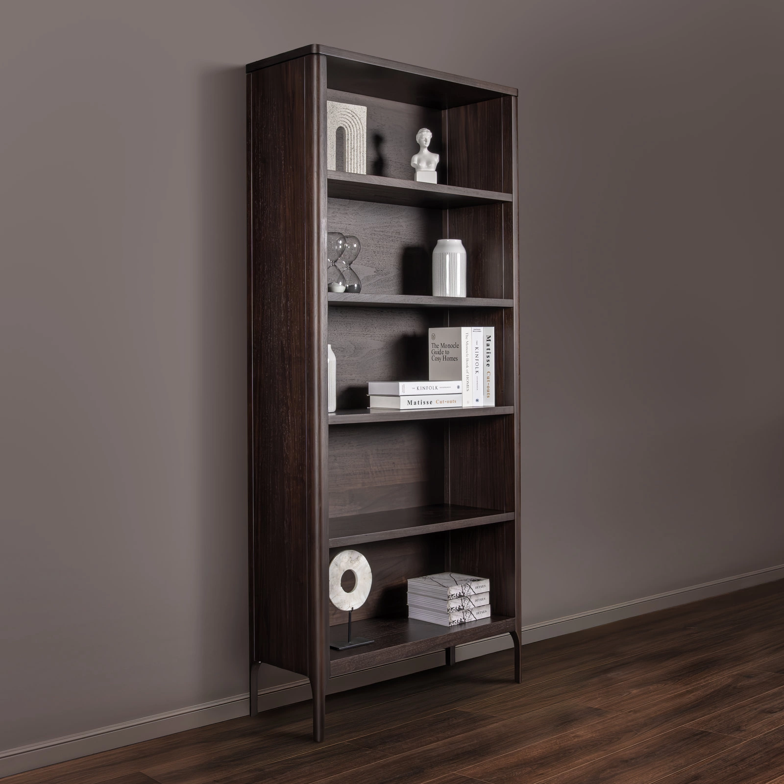 Корпус стеллажа изготовлен из высококачественного МДФ высокой плотности, Ножки - из массива дерева.