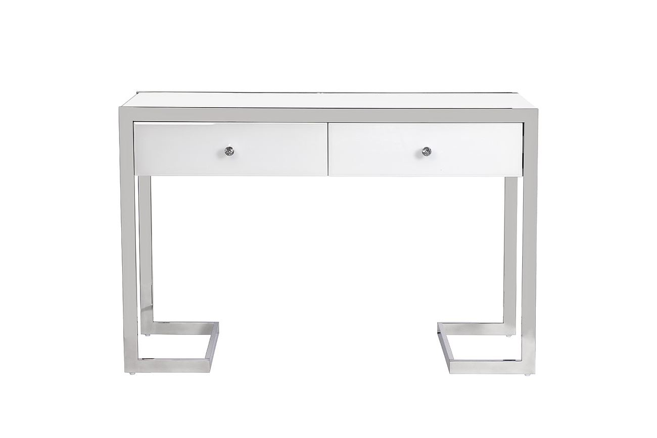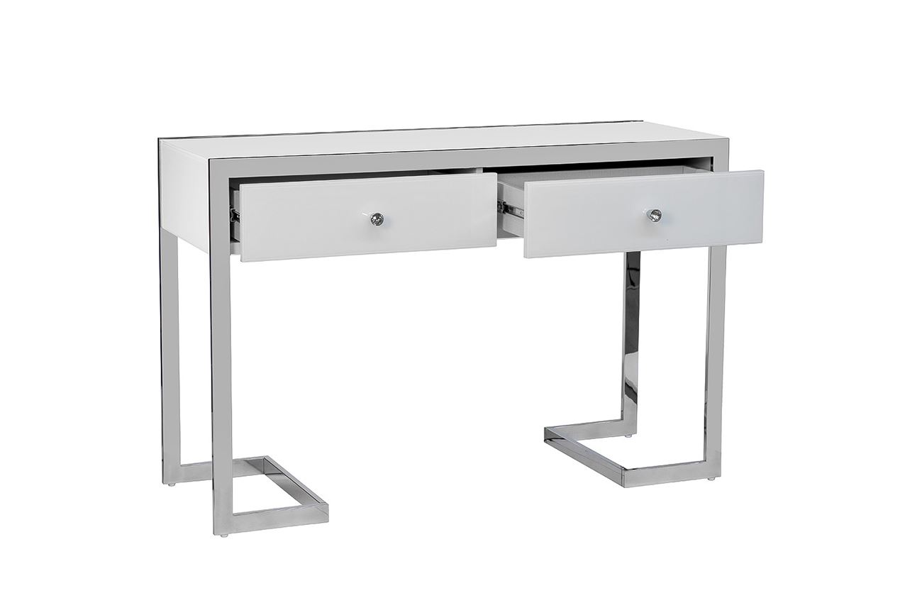 Дизайнерская консоль является популярным декоративным предметом мебели. Опора выполнена из нержавеющей стали, столешница из МДФ обита стеганой экокожей цвета экрю. Консоль будет уместна в гостиной, кабинете или прихожей, она прекрасно впишется в малогабаритные помещения в современном стиле. Хорошо сочетается с зеркалами. Современный и слегка эксцентричный дизайн позволит использовать консоль как в традиционных, так и в необычных интерьерных решениях. Гармонично украсит дом, придаст помещению изысканный, утонченный вид.
