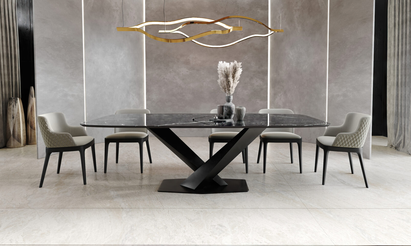 Обеденный стол STRATOS - это элегантная и стильная мебель, которая подойдет для создания уютного и функционального пространства в вашей обеденной зоне. Этот стол идеально сочетает в себе лаконичный дизайн и прочные материалы. Стол STRATOS имеет овальную форму столешницы, которая не раздвигается. Столешница изготовлена из МДФ 19 мм с керамикой 6мм. Столешница из керамики делает его более прочным и стойким к повреждениям. Опора стола выполнена из металла, что обеспечивает стабильность и прочность. Вы можете выбрать стол с опорой в одном из четырех цветов: черном, антраците, белом или бургундском. Черный и антрацитовый цвета придают столу современную и элегантную атмосферу, белый цвет добавляет светлоты и воздушности, а бургундский цвет создает аристократичный и изысканный вид. Стол STRATOS не только является эстетически привлекательным предметом мебели, но и очень практичным. Он обеспечивает достаточно места для комфортного размещения гостей и создает прекрасное место для приятных обедов и ужинов. Благодаря использованию качественных материалов и устойчивой конструкции, этот стол будет вам служить долгие годы без потери своего привлекательного вида.