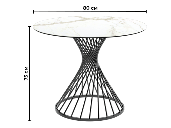 Стол с круглой столешницей не раскладывающийся, МДФ 19 мм с керамикой 6мм.й Опора металл цвет черны