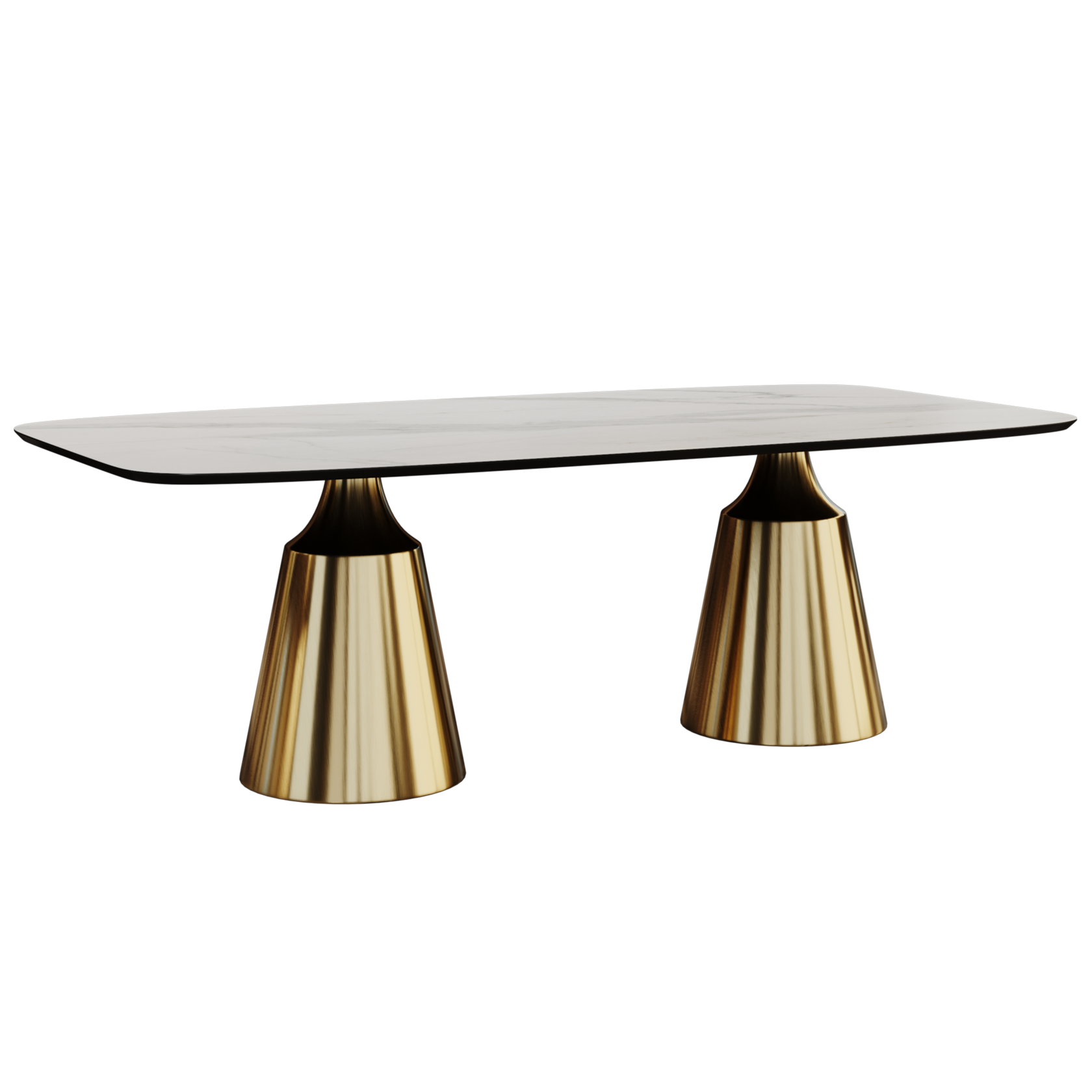Одна из самых популярных моделей среди обеденных столов - это линия Yoda, состоящая из нескольких вариантов, из которых можно выбрать, чтобы персонализировать свою собственную дизайнерскую столовую. Основание состоит из двух конусных опор, массивный внешний вид которого облегчается металлической отделкой и соединением с узкой и отступающей столешницей, как бы напоминающей длинную элегантную шею, поддерживающую столешницу. Линия включает круглый и овальный керамический стол Yoda и версию со столешницей из шпона. Ее органический и натуральный внешний вид подчеркивает путь бренда к экологичному дизайну, который создается из натуральных материалов с использованием методов с низким энергопотреблением.