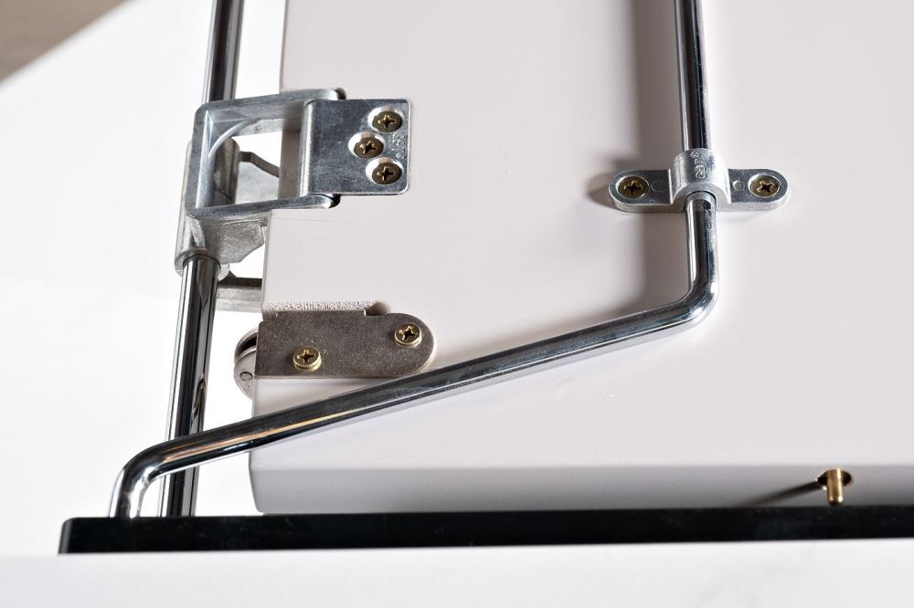 Удобный и элегантный обеденный стол-трансформер раскладывается одним движением руки. Просто поверните столешницу и стол увеличится в размере. Необыкновенный обеденный раскладной стол с двухслойной столешницей с коричневыми прожилками и черным основанием и ножками. Столешница выполнена из 5, 5мм керамики на 6мм закалённом стекле. Такое покрытие в достаточной степени износостойко, декоративно и удобно в быту. В сложенном виде размер столешницы 120*89cм, в разобранном - 178*89cм. Каркас и ножки изготовлены из покрашенного металла. Высота стола – 77cм. Данная модель – для тех, кто стремится быть в тренде, кому нравится экспериментировать с новыми дизайнами, для кого простота и комфорт – главное. Наличие такого стола в интерьере — огромный плюс к удобству и способности обстановки изменится исходя из потребности владельца.