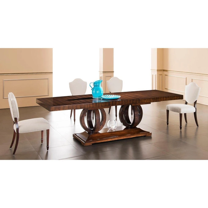 Большой обеденный стол в стиле неоклассика от бренда Fratelli Barri. Роскошная силуэтная база в классическом стиле, основательная столешница - все это делает стол внушительным и грациозным одновременно. Идеально подойдет также для просторного загородного дома. Каркас — массив дерева и высококачественная МДФ высокой плотности, отделка — натуральный шпон вишни тонированный в теплый коричневый цвет. Стол раскладной. Вставка 60 см. Вставка хранится внутри стола. Вставка в той же отделке как столешница. Стол для комфортного размещения 8-12 человек Внимание! Цвета предметов на изображениях могут отличаться из-за особенностей цветопередачи различных мониторов.