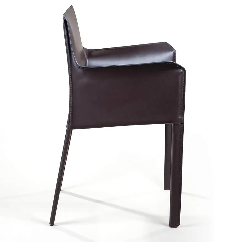 Кожаный стул Piuma всегда будет выгодно смотреться в интерьере, подчеркивая вкус и статус владельца. Модель отличается привлекательным внешним видом и практичностью. Стиль, в котором он выполнен, можно охарактеризовать как мягкая геометрия! Прямоугольное сиденье, высокая спинка с небольшим уклоном назад делают стул невероятно удобным. Высокие подлокотники в дизайне стула как дополнительная опция для еще большего комфорта. Главная особенность модели – плавный переход спинки в сиденье, образующий мягкий изгиб. Ножки обеденного стула, также обтянутые кожей, создают единый образ и являются визуальным продолжением сиденья. Стулья Piuma непременно украсят банкетные залы, салоны красоты, переговорные и, конечно, гостиную или кухню в доме.