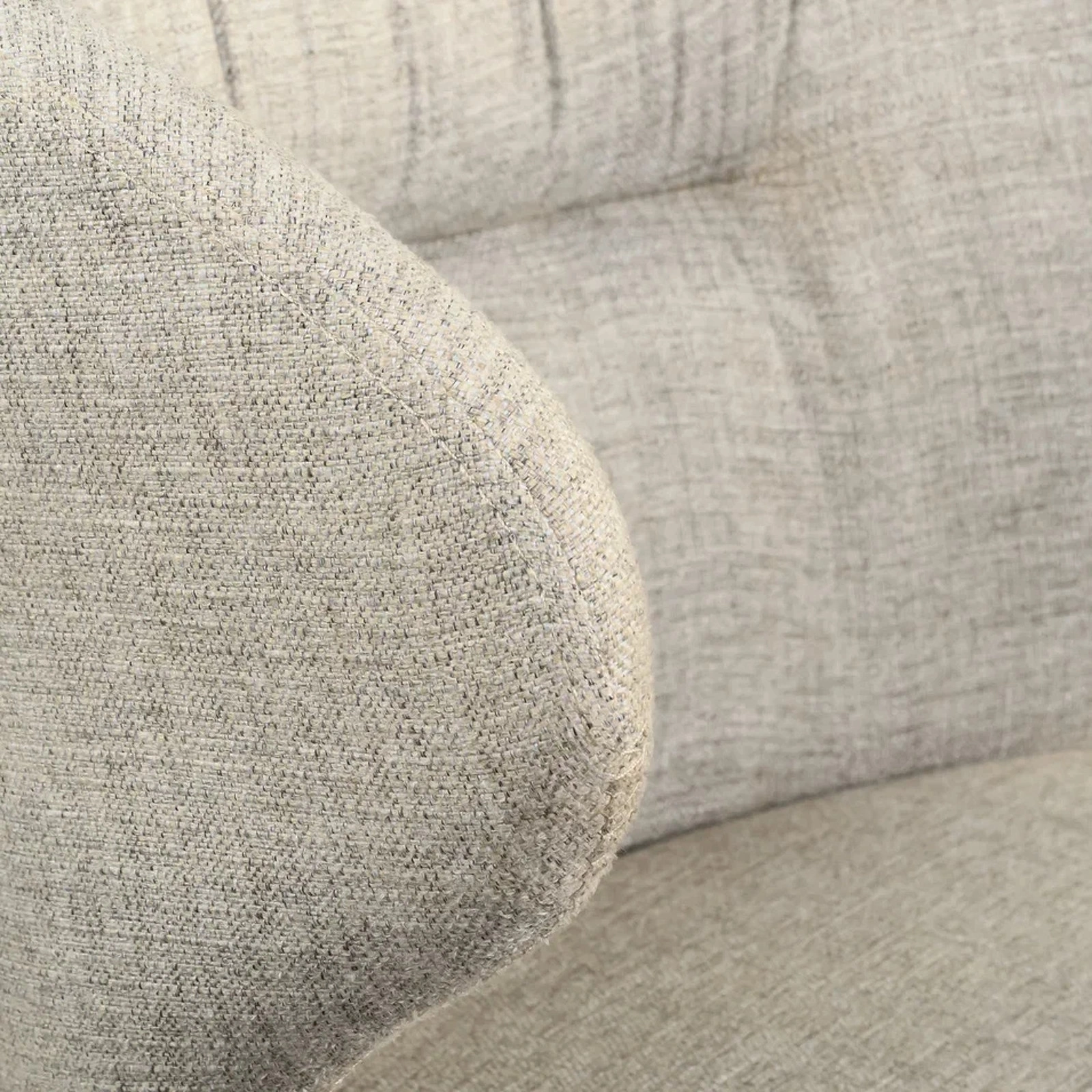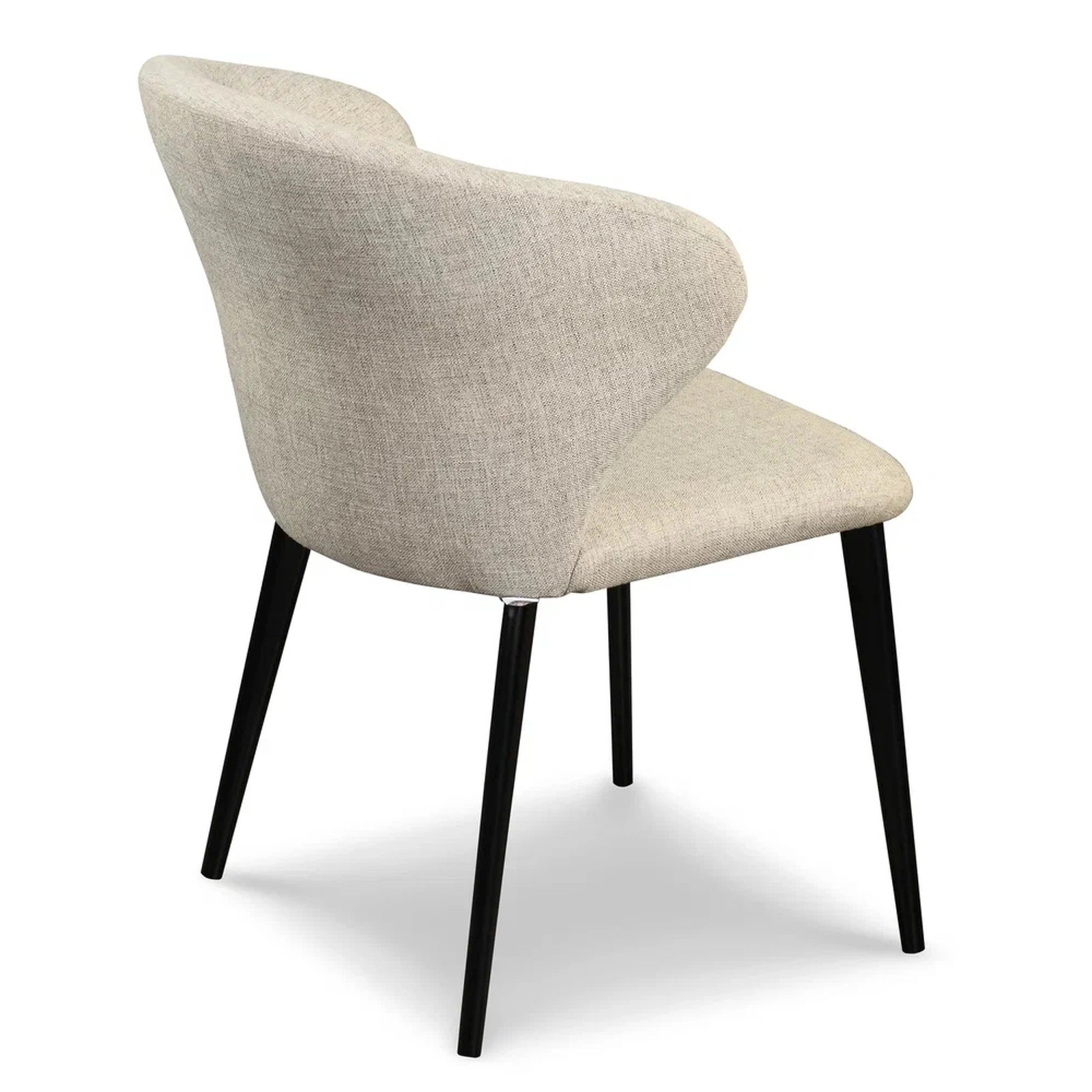 Эргономичный стул от бренда MOD Interiors выполнен из прочного металлического основания, сидение и фигурная спинка из многослойной фанеры, обивка - ткань рогожка в серых тонах.