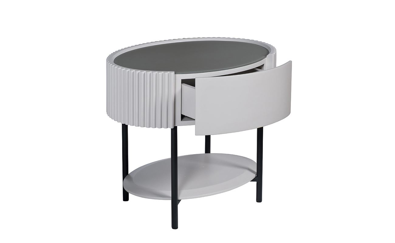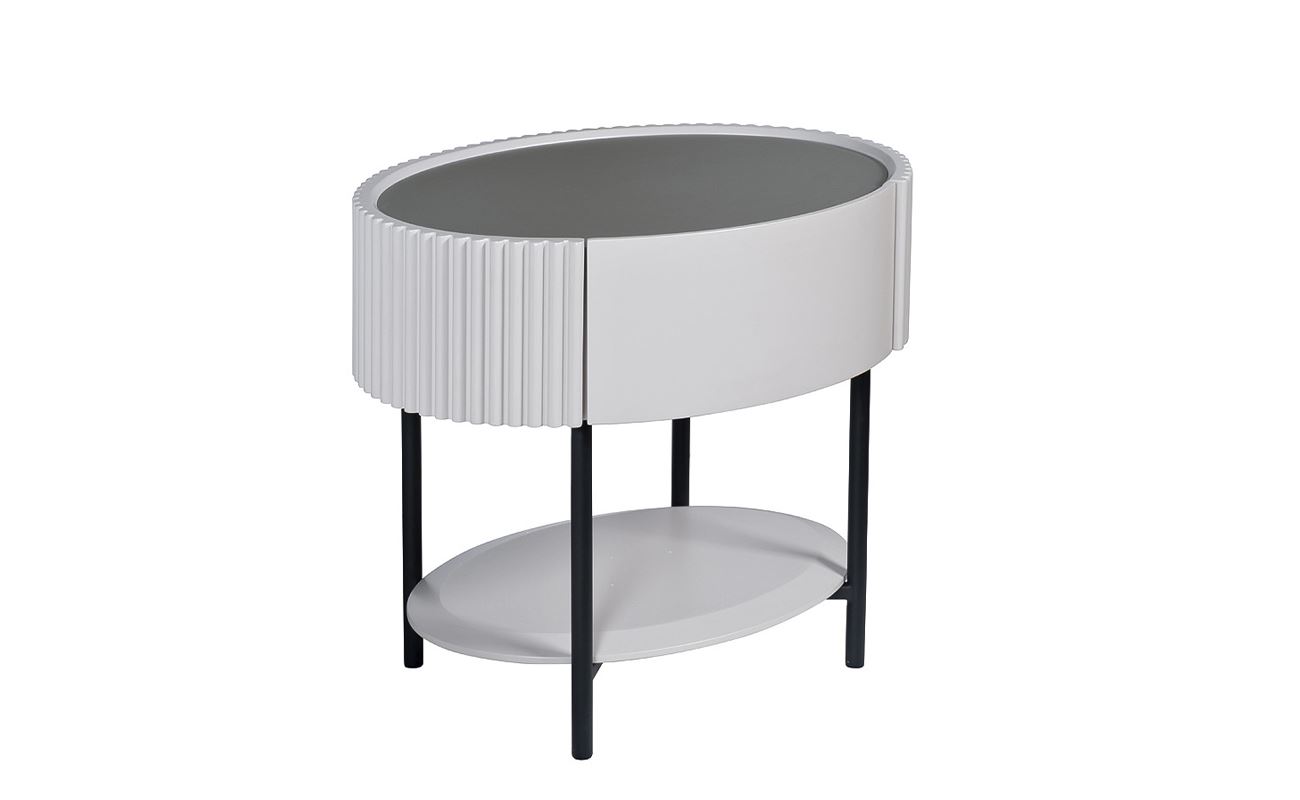 Стильная и современная тумбочка белого цвета гармонично впишется в светлый интерьер. Функциональную модель можно использовать для оформления спальни, гостиной, кабинета или прихожей. Предмет мебели можно установить в нише, у кровати или возле дивана. Изделие имеет два выдвижных ящика, которые можно использовать для хранения документов и подручных мелочей. Модель с металлическими ножками смотрится очень органично и изысканно. Граненый фасад – особенность представленной модели. Оригинальная белая тумбочка позволит воплотить в жизнь самые смелые интерьерные решения, особенно в сочетании с консолью и комодом из этой же серии.